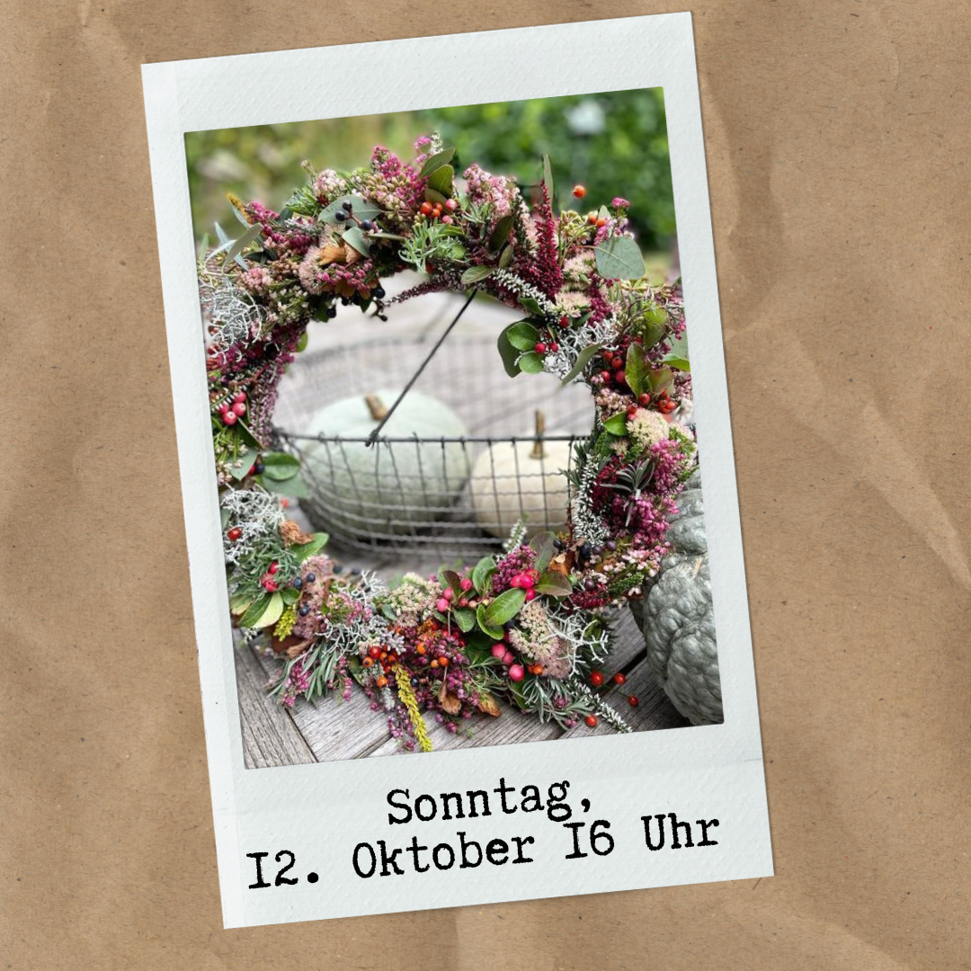 Tauche ein in die warmen Töne des Herbstes! Gemeinsam kreieren wir wunderschöne Hoops und Kränze aus Naturmaterialien wie Beeren, Hagebutten, Blättern und allem, was der Herbst zu bieten hat. Lass dich von den satten Beerentönen und der Vielfalt der Natur inspirieren und gestalte dein persönliches Kunstwerk für dein Zuhause.